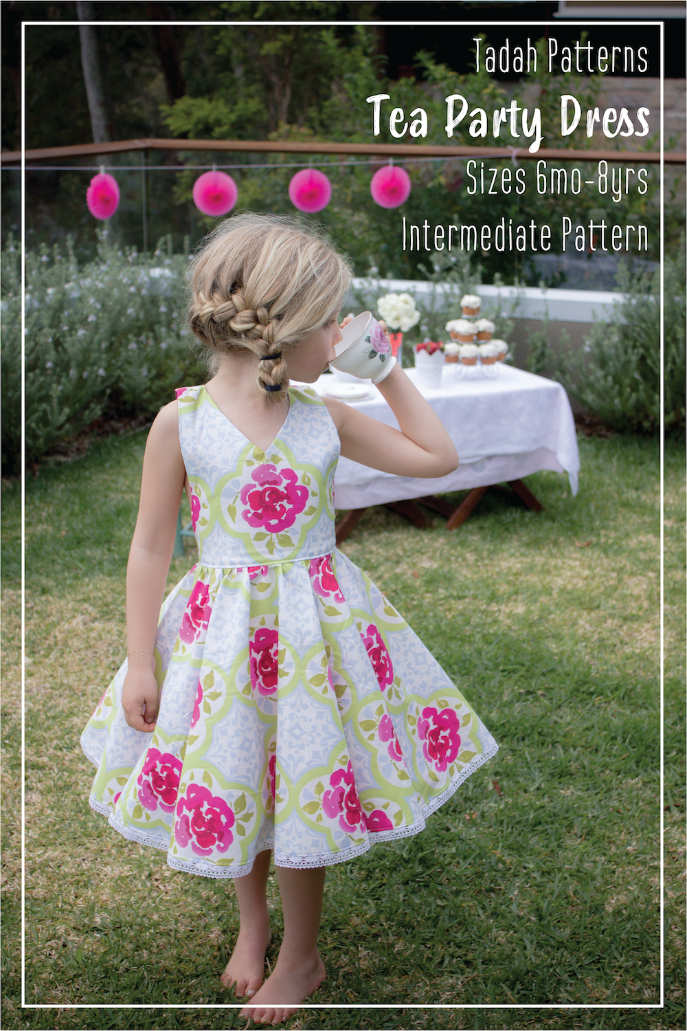 The pattern is the Tea Party Dress from Tahdah Patterns will include sizes 0 (6–12 months) to size 8.